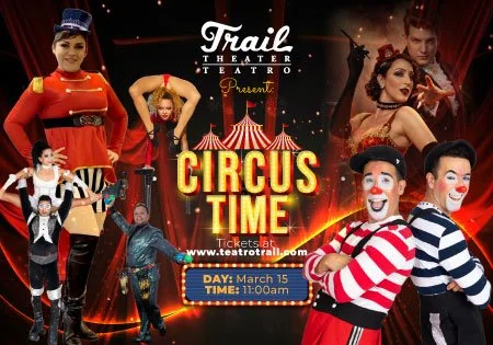 "Circus Time" es un divertido espectáculo para toda la familia donde traemos al Teatro los encantos del Circo. Un show fantástico para disfrutar de Magia,Acrobacias, Malabares, equilibrio y por supuesto las divertidas travesuras de los Payasos Petunio y Cantaleta. No te lo pierdas!!